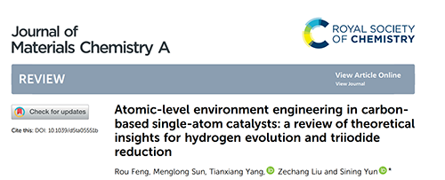 近日,西安建筑科技大学云斯宁教授团队在国际知名期刊《Journal of Materials Chemistry A》上发表了题为 “Atomic-Level Environment Engineering in Carbon-Based Single-Atom Catalysts: A Review of Theoretical Insights for Hydrogen Evolution and Triiodide Reduction”的综述论文。云斯宁教授为论文通讯作者,博士研究生冯柔为论文第一作者,西安建筑科技大学为论文独立完成单位。