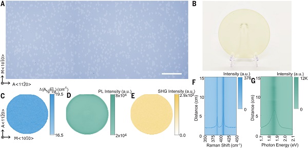 图4 六英寸单晶MoS2晶圆的均匀性表征 ©2026 AAAS