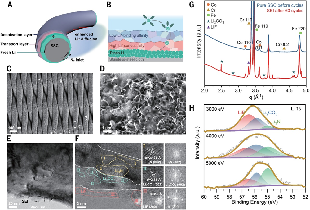 图1. 锂介导氮气电解的极限电流与离子传输型固体电解质界面膜。© 2026 AAAS