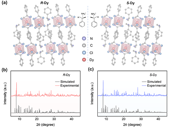 图1 a, b. R–Dy和S–Dy的晶体结构。c, d. R–Dy和S–Dy的粉末XRD。