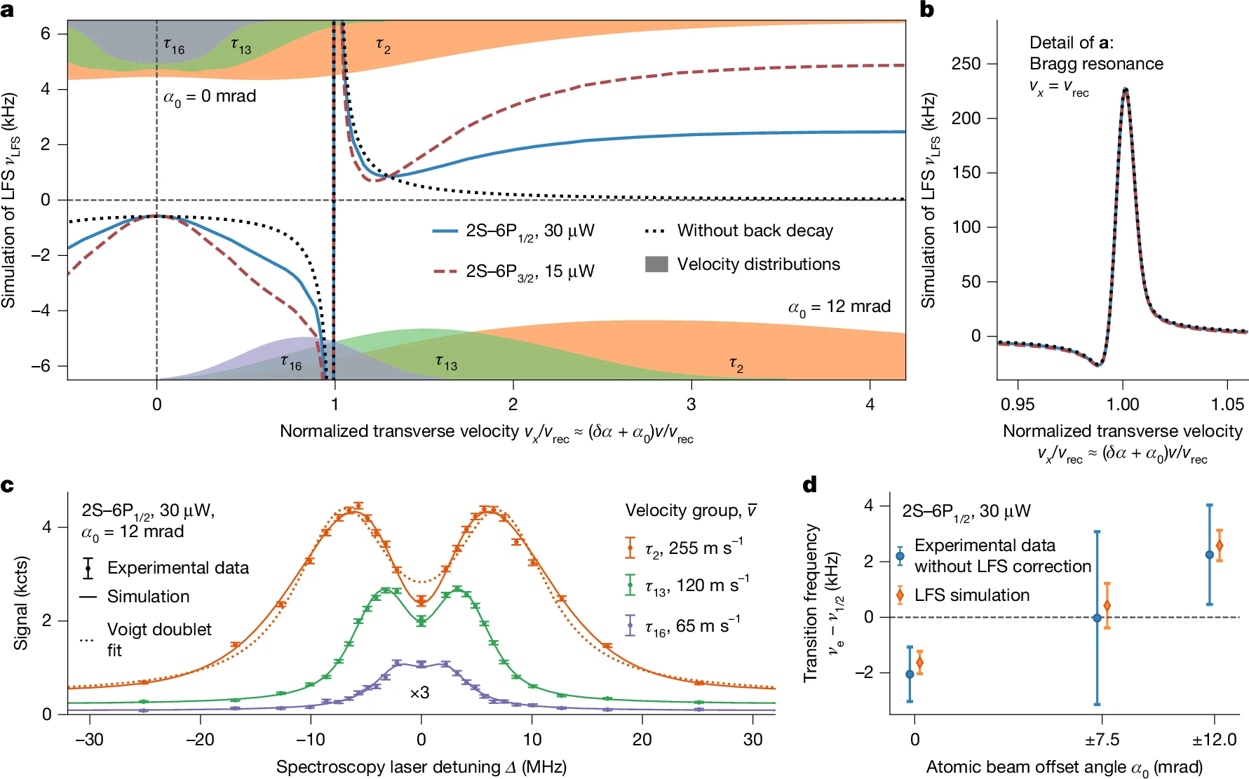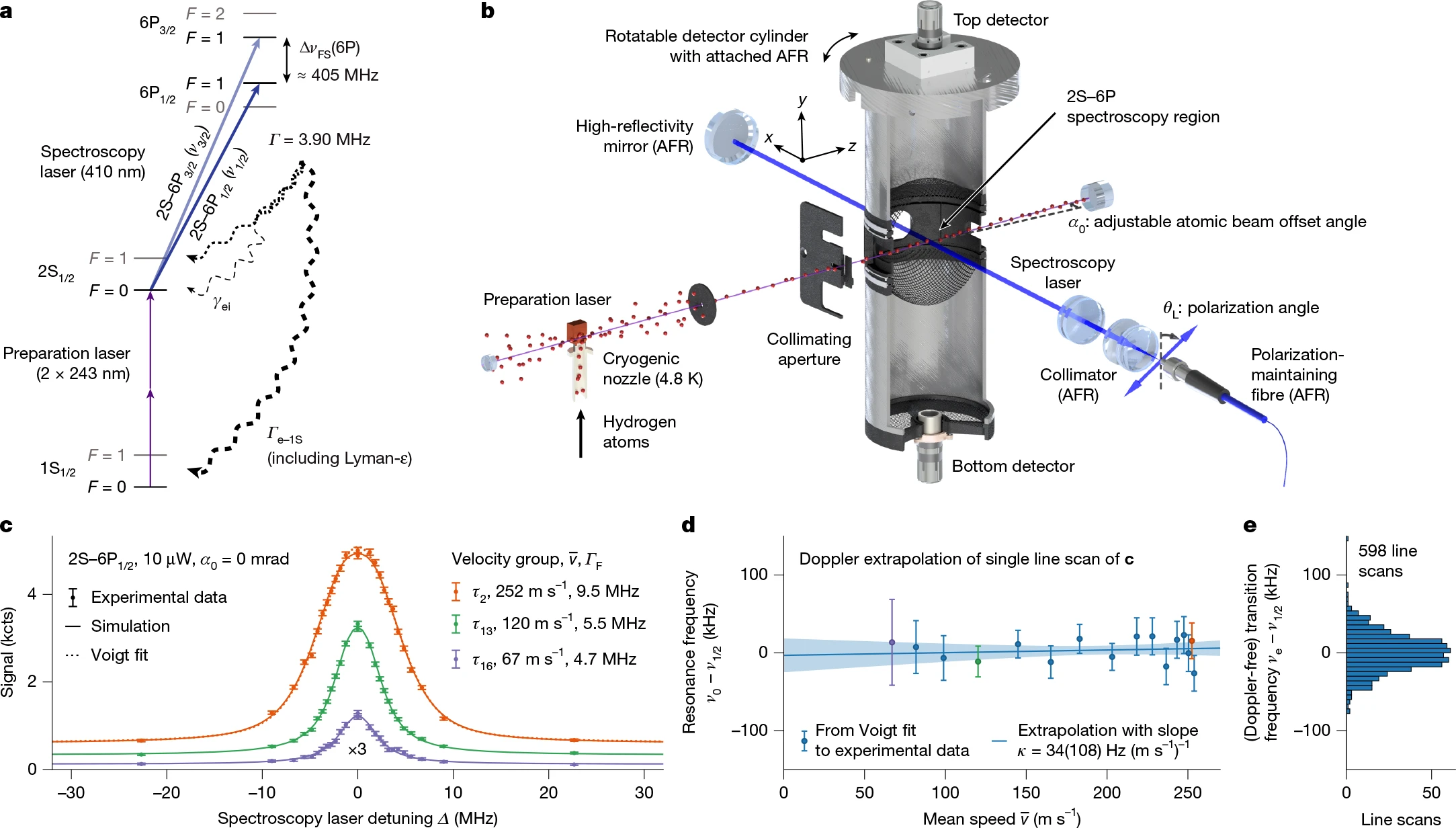 图2. 2S–6P 跃迁的无多普勒单光子光谱 © 2026 Nature