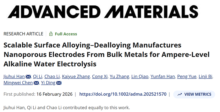 该研究建立了从块体金属→纳米多孔电极→器件级电解槽的可规模化制造新范式,为高电流密度绿氢制备提供了重要材料与工程技术基础。