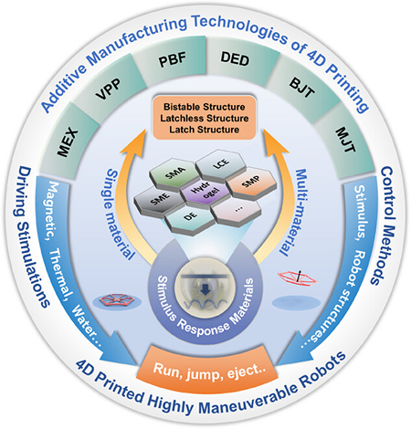 4D打印高机动性机器人:刺激响应材料的可控功率放大行为