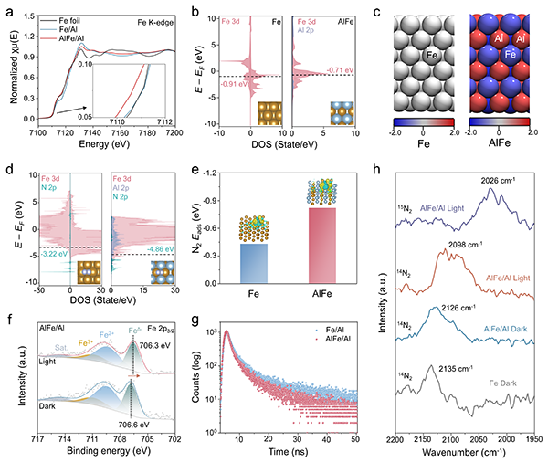 图4 AlFe/Al催化剂的电子结构及其N2分子活化行为探究。
