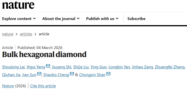 原文详情:Bulk hexagonal diamond (Nature 2026, DOI: 10.1038/s41586-026-10212-4)