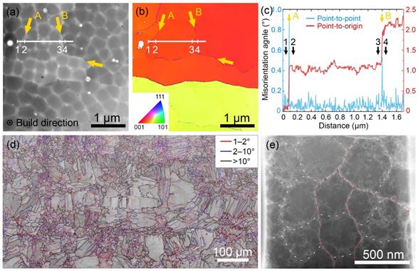 近年来,增材制造等快速凝固工艺制造的金属材料中普遍存在已经形成的位错胞结构。这类结构常常赋予材料较高的强度和良好的加工硬化能力。然而,一个关键问题长期存在:这些位错胞结构在变形过程中如何参与塑性变形,其对于强度的贡献是通过晶界强化作用还是位错强化作用?围绕这一核心问题,该工作通过原位显微表征与力学测试等手段,对激光粉床熔融制造的合金中位错胞结构的变形行为进行了系统研究,揭示了其对材料强化机制的影响。这项工作为理解复杂位错亚结构的力学作用提供了新的视角。
