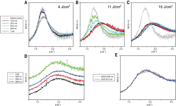 图2 不同激光注量下HDA减压过程中的X射线散射 © 2026 AAAS
