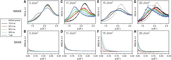 图4 不同激光注量下LDA致密化和减压过程中的X射线散射 © 2026 AAAS