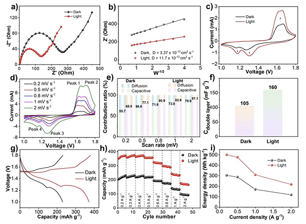 图三 MnO2光充锌离子电池的电化学性能