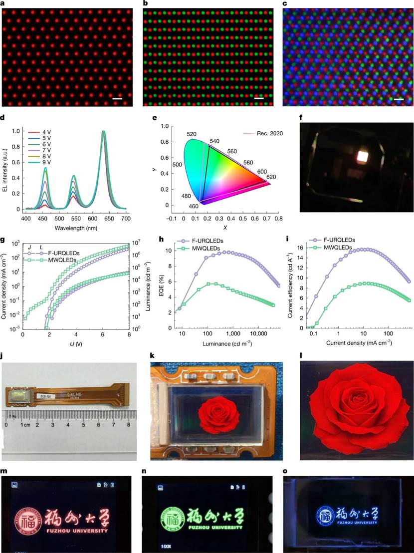 图5 图像化RGB量子点器件的光电性能和有源矩阵驱动演示© 2026 Springer Nature
