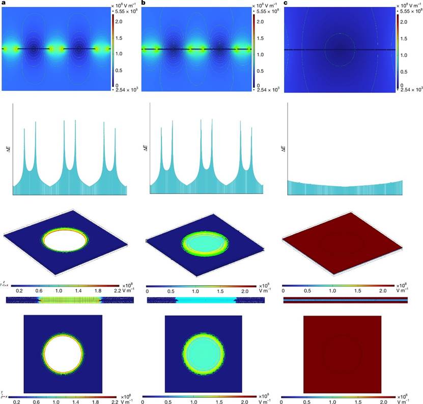 图4 施加偏置条件下像素微孔内电场分布的模拟© 2026 Springer Nature