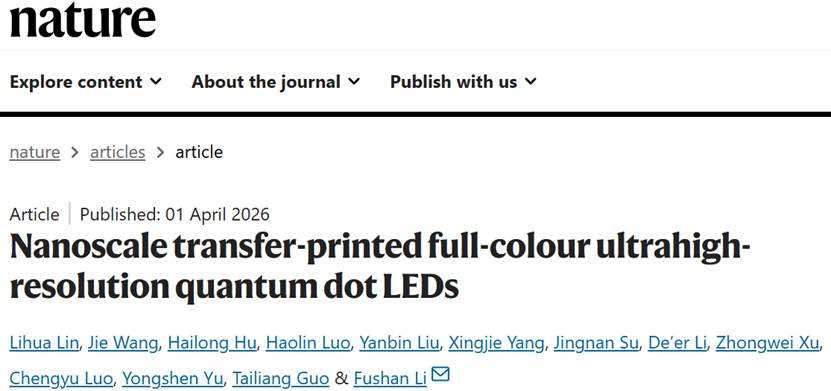 图1 亚微米RGB全彩QD发光层NP-TP工艺示意图及DAFD© 2026 Springer Nature