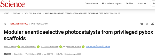 原文详情:Modular enantioselective photocatalysts from privileged pybox scaffolds (Science 2026, 392, 188-193)