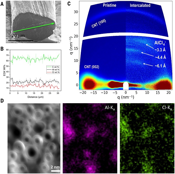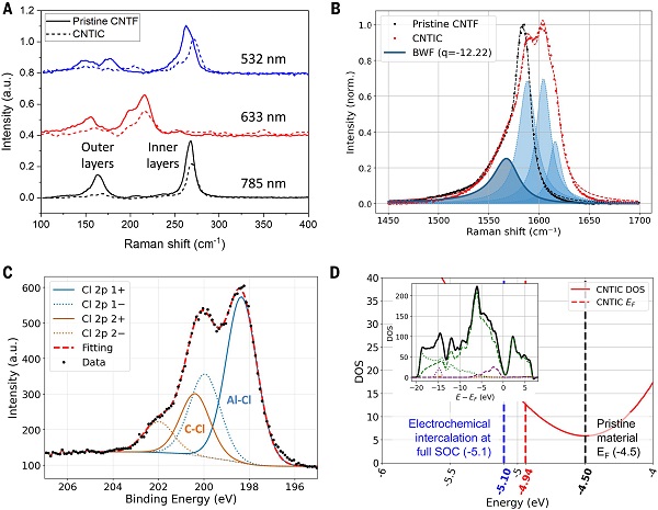 图1 AlCl4–插层DWCNT纤维的结构表征 ©2026 AAAS
